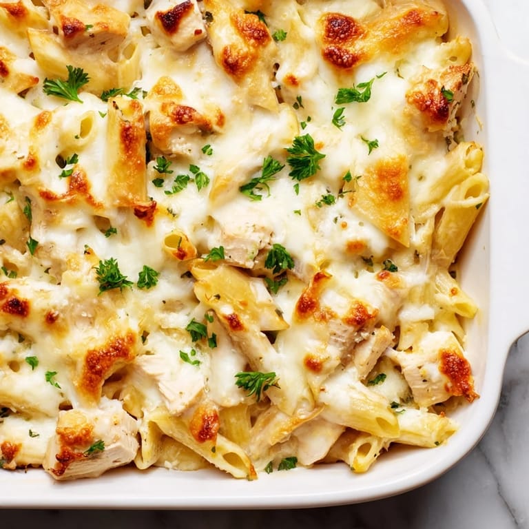 Save to Pinterest The smell of bubbling cheese and cream sauce has been pulling me into the kitchen since I was old enough to stand on a chair and stir. This Chicken Alfredo Bake came together on a particularly gray Tuesday when nothing sounded better than carbs covered in more carbs. Something magical happens when pasta and sauce get cozy in the oven, that cheese blanket turning golden and just starting to brown at the edges.