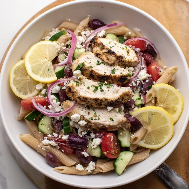 Try dairy-free feta alternatives or skip the cheese entirely. The dish remains delicious thanks to the tangy dressing, olives, and lemon-marinated chicken providing plenty of flavor.