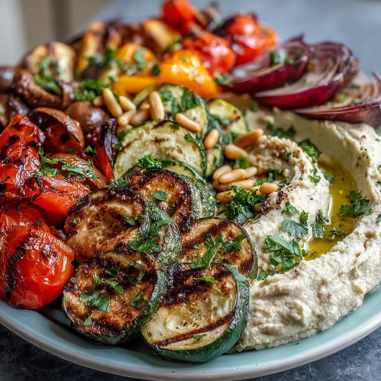 Save to Pinterest The first time I made a grilled veggie platter was after hearing the sizzle of peppers and onions on my neighbor's barbecue—something about the sound made me crave that charred sweetness. The aroma mingled with laughter and chatter drifting over the fence, and suddenly, I was inspired to toss everything colorful I had onto my grill. I like how simple choices can turn into traditions, especially when summer seems to invite every fresh flavor. That day, I focused on pairing creamy hummus with vibrant veggies to balance textures—the result was more than just a side dish; it was a centerpiece that gathered everyone together. There's something playful about assembling each bite, letting everyone choose their favorites and return for seconds.