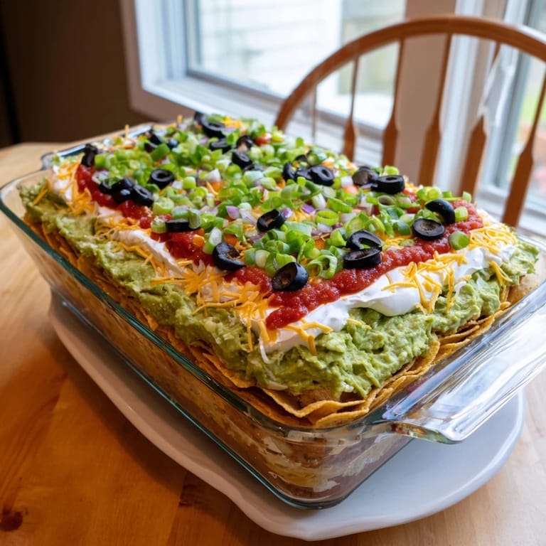 Save to Pinterest The first time I brought this seven-layer dip to a Super Bowl party, I actually hid it in the back of the refrigerator until halftime. My sister-in-law had made her famous artichoke dip, and I didn't want to step on any toes. But someone found it anyway, and suddenly the room went quiet. Within fifteen minutes, that platter was scraped clean, and people were actually chasing the last layer of beans around the dish with broken chips.