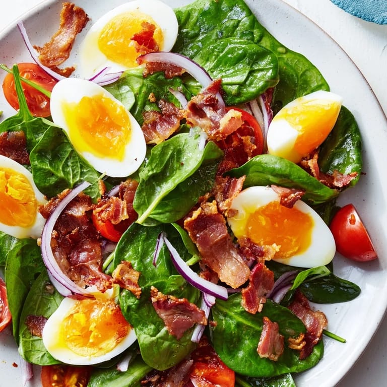 The real secret is timing everything so the bacon stays warm when it hits the spinach. That slight warmth wilts the leaves just enough to make them welcoming rather than stiff. I start the eggs first, then the bacon, and whisk the dressing while everything else cooks.